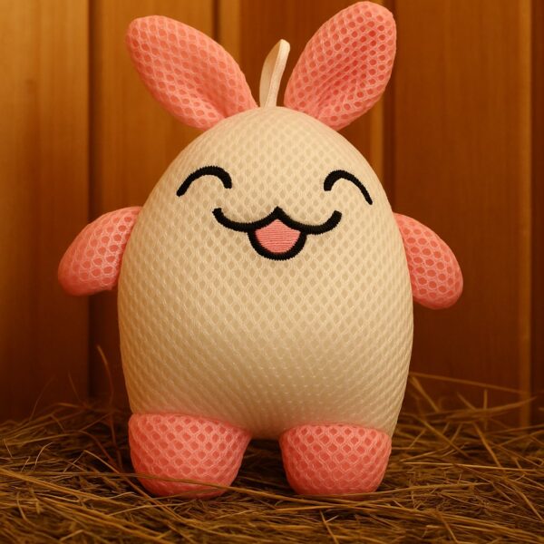 “Zaķītis” nav tikai švammīte — tā ir jautrība, kas izskatās un jūtas dzīva. Tās draudzīgais smaids un mīkstais pieskāriens iedrošina bērnu ienirt ūdens spēlēs, kur ziepju putas pārtop kalnos un vannas ūdens kļūst par siltu pasaku.
