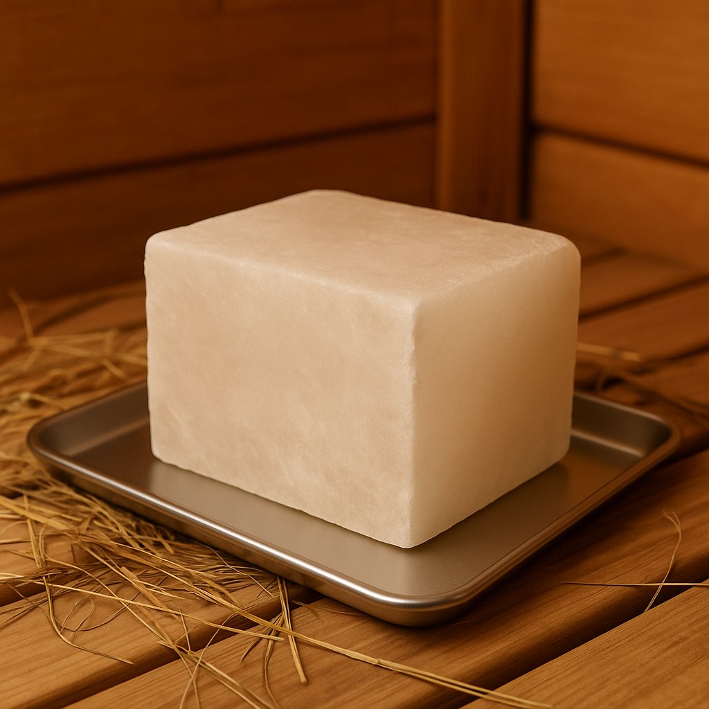 1️⃣ Sagatavošana – noņemiet iesaiņojumu un novietojiet sāls bloku uz sakarsētiem pirts akmeņiem.