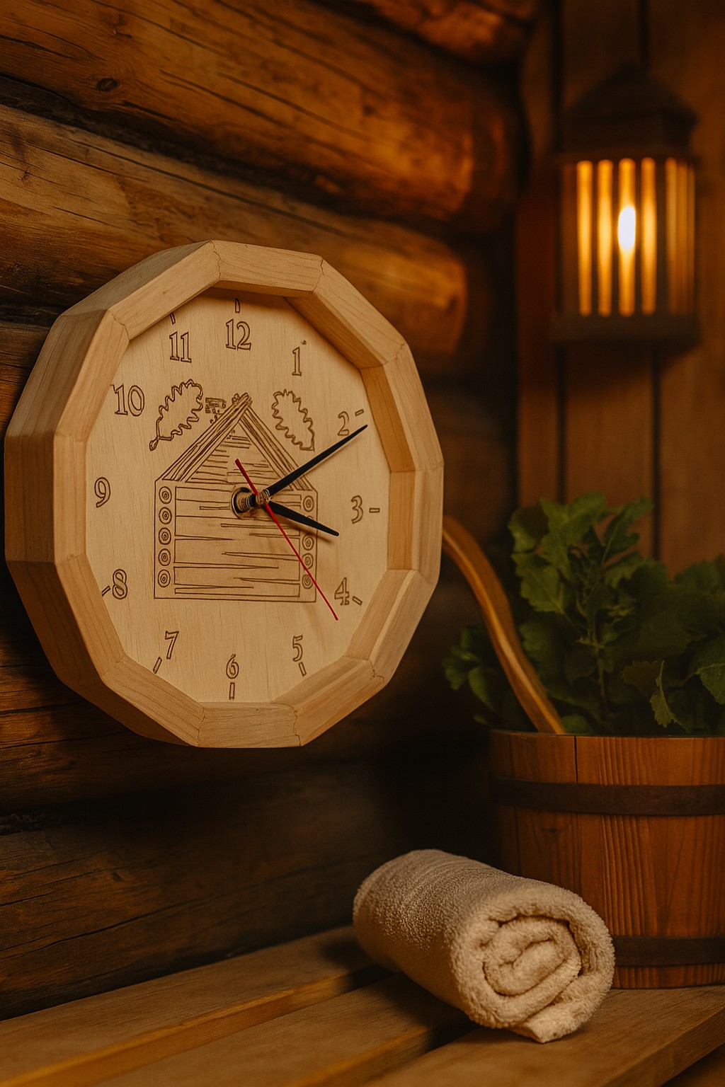 Tas nav tikai pulkstenis — tā ir daļa no pirts rituāla, kur laiks rit mierīgi un dabiski.