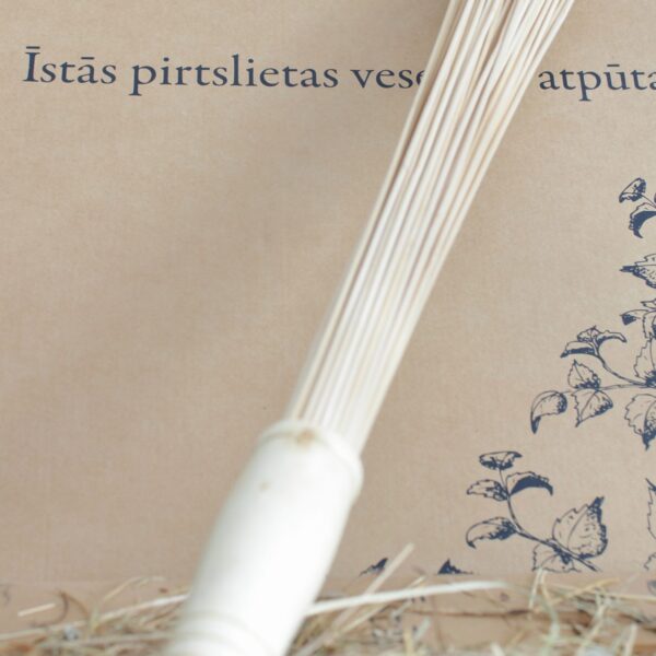 1️⃣ Pirms lietošanas iemērc slotiņu siltā ūdenī uz 10–15 minūtēm, lai lapas kļūtu elastīgas.