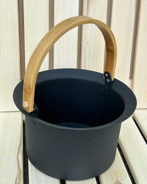 Tumšais koks ar nerūsējošā tērauda apļstīpām un vāku rada stingru, bet elegantu noskaņu. Bļoda saskan ar pirts interjeru un izceļ dabisko materiālu siltumu. Tā ir gan praktisks, gan vizuāli skaists priekšmets, kas piešķir pirtij sakoptības sajūtu.