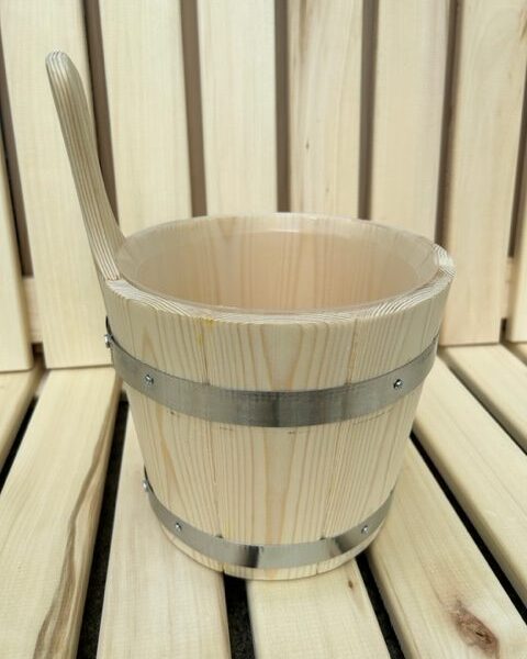 Pirts ķipītis 3L ar plastmasas ieliktni – klasisks koka trauks ar praktisku aizsardzību pirts rituāliem